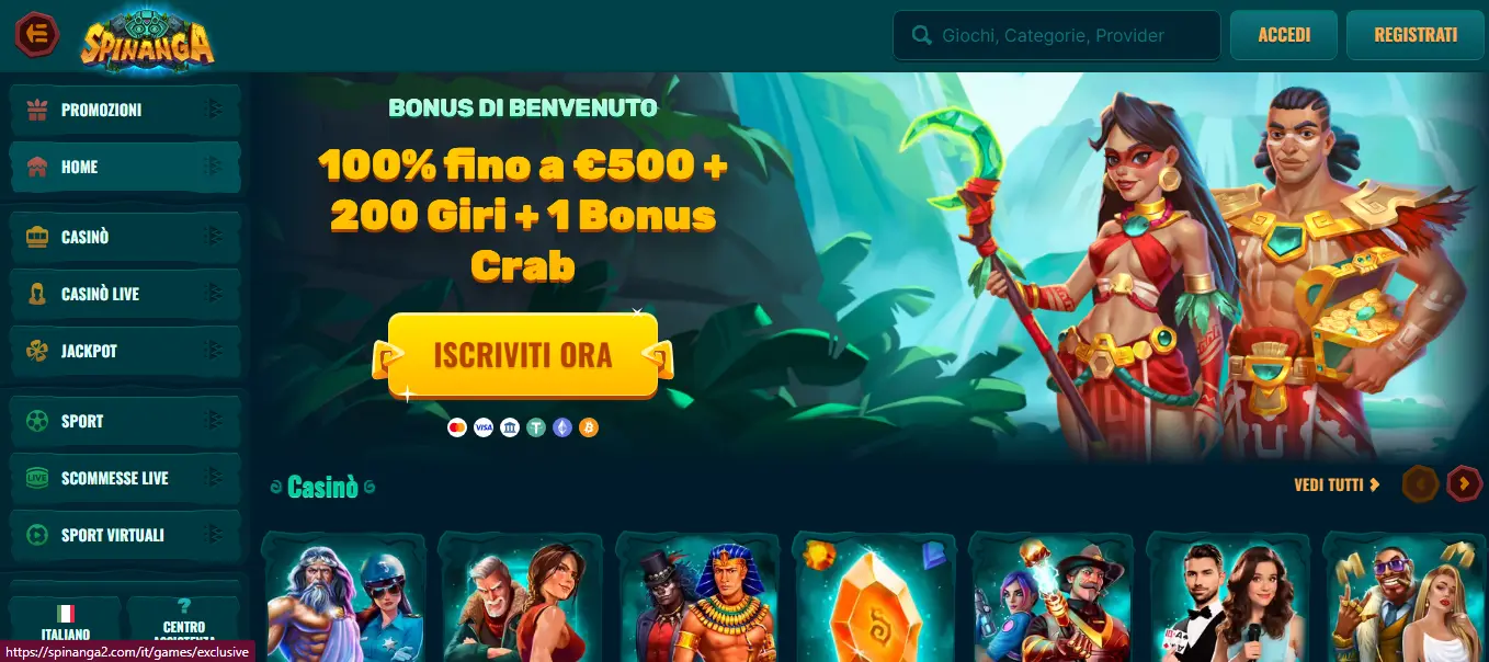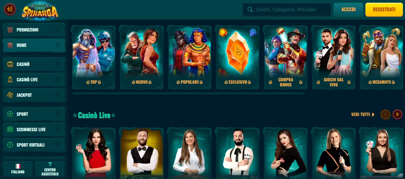 Spinanga casino sito desktop e App Mobile
