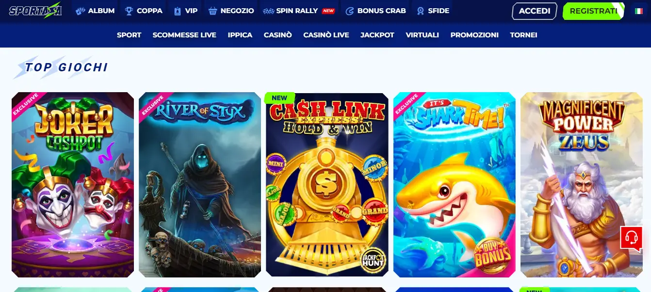- Jackpot: nella terza sezione di Sportaza abbiamo i vari giochi, in particolare slot online, con montepremi elevati.